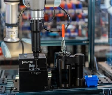 Boost your production efficiency with reliable automated screwdriving, eliminating the risks of product recalls and assembly-line downtime. Robotiq’s screwdriving solution streamlines the entire process by automating force control and enabling seamless communication between the screwdriver, screw feeder, robot, and vacuum technology.